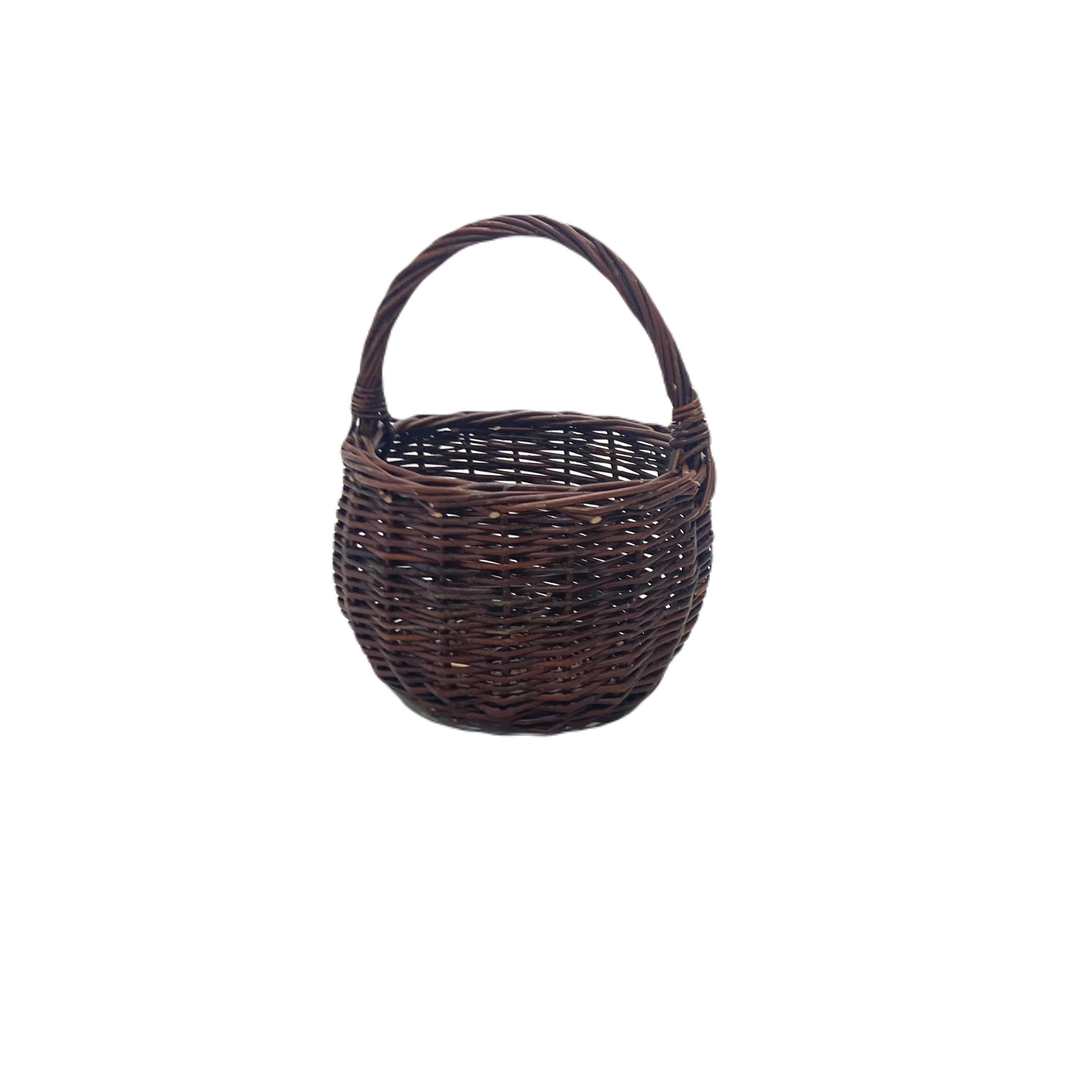 Proutěný koš kulatého tvaru, materiál neloupané vrbové proutí bez povrchové úpravy.